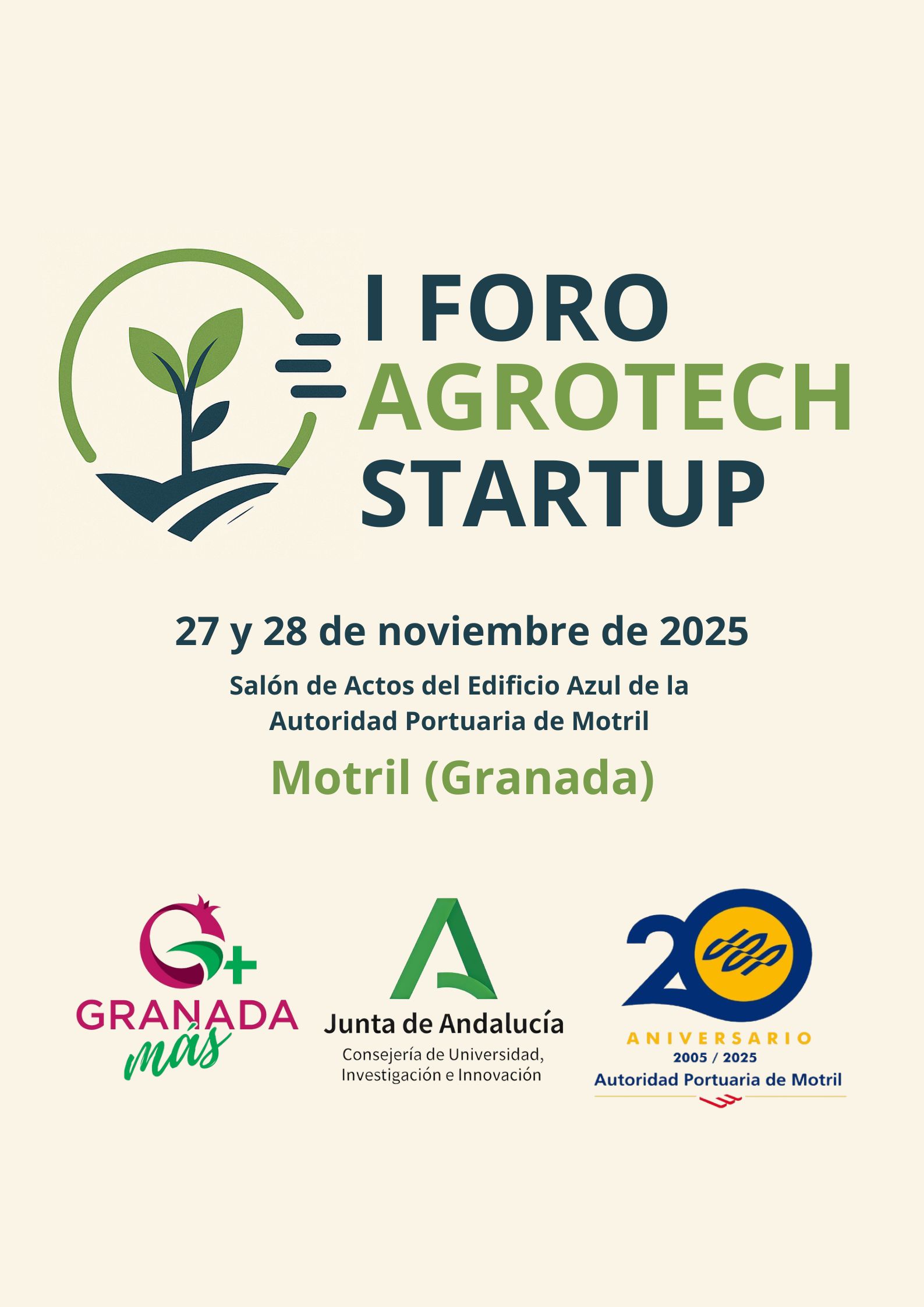 I Foro Agrotech Startup, celebrado en la localidad de Motril (Granada), los días 27 y 28 de noviembre de 2025.